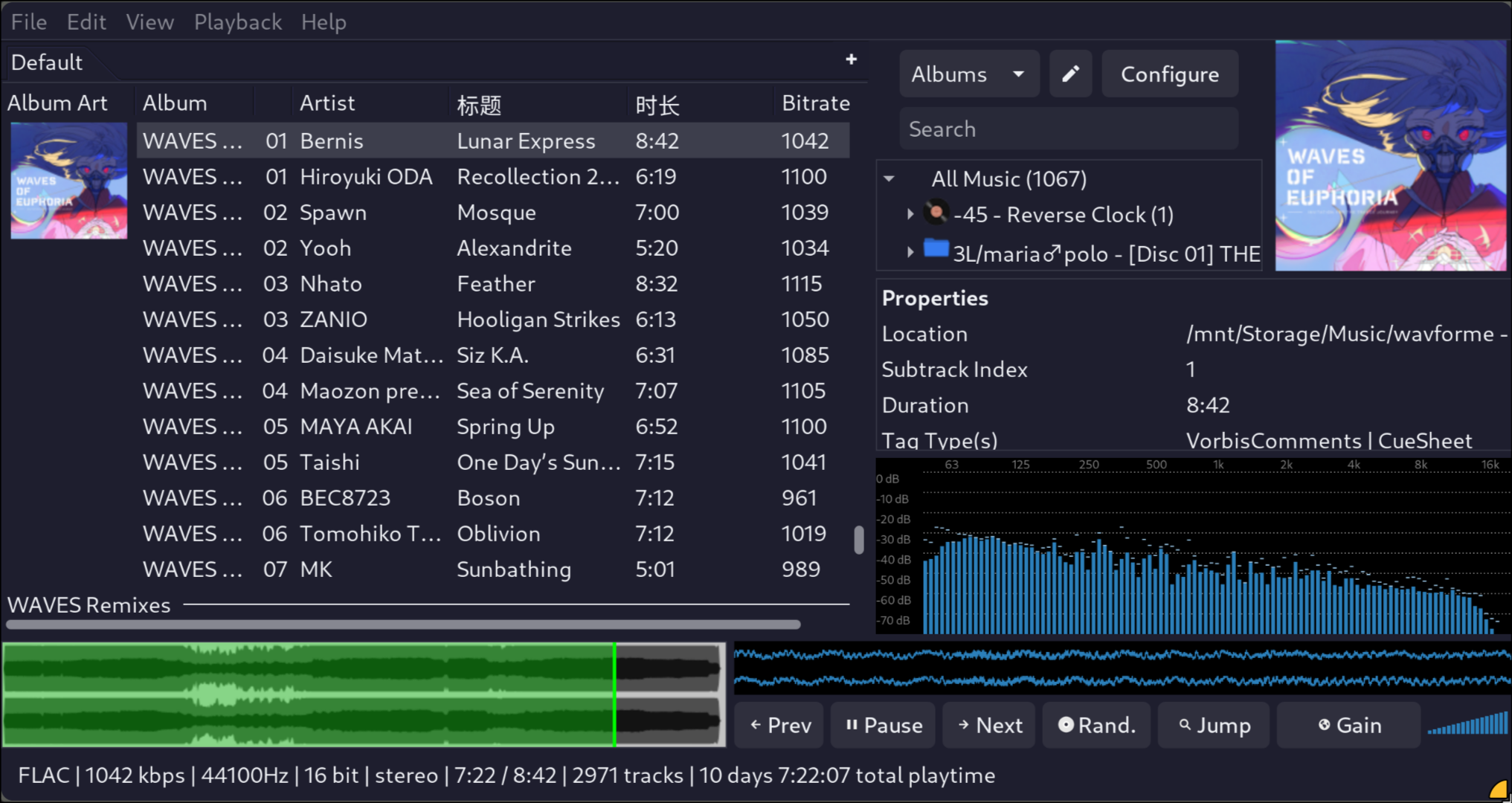支持ALSA / PipeWire / PulseAudio甚至是Null和OSS等远古老机器的输出,支持ReplayGain,支持DSD文件播放等等。就目前来说,DeaDBeeF的确是我能找到最牛批的播放器了,前提是愿意花一点时间折腾。我是跟着这个YouTube教学走了一小部分GUI界面设置。