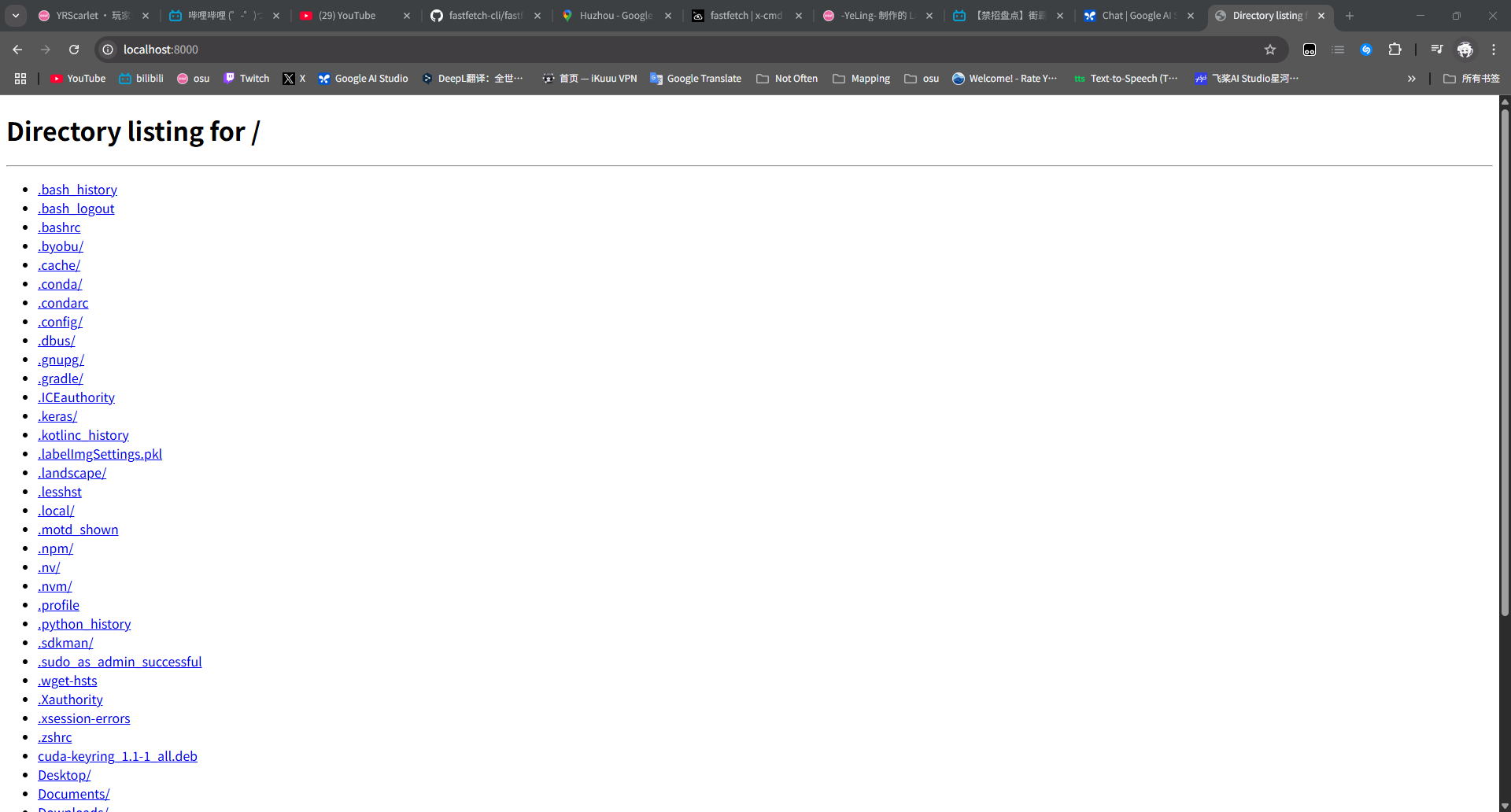 搞定。只需要访你的ip:8000 (本地访问是localhost:8000)就能访问所有的文件目录了,如图: